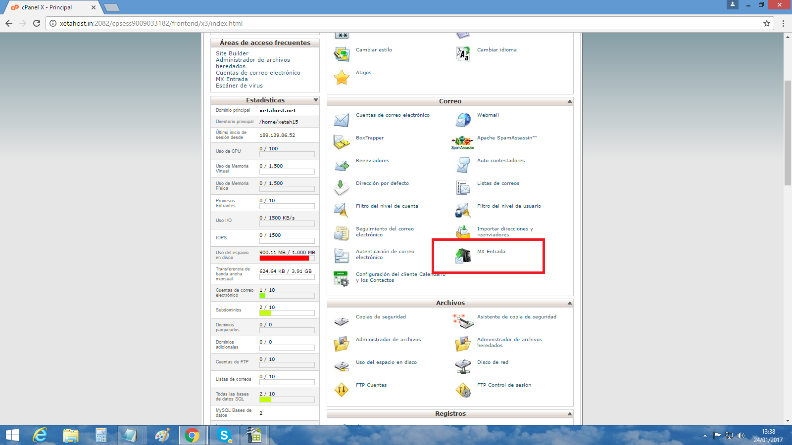 1.- Primero entraremos a nuestro cpanel y buscaremos MX entrada.