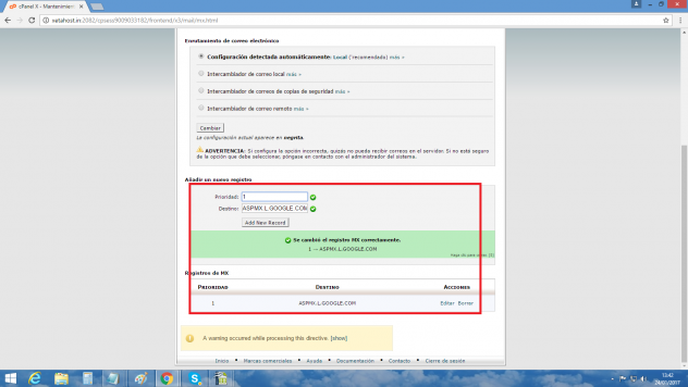2.- Una vez dentro de los registros mx empezaremos a modicarlos por las siguientes entradas: