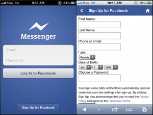 Facebook Messenger para Android ha sido actualizada, eliminando el requisito de que los usuarios debían tener cuenta de Facebook, y en su lugar se les permite ingresar con nada más que un número de teléfono móvil y el nombre.
