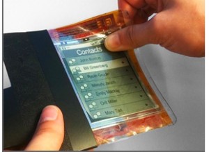 Un prototipo de teléfono inteligente o Smart Phone con forma de panel flexible que opera como “una pequeña hoja de papel interactiva”.