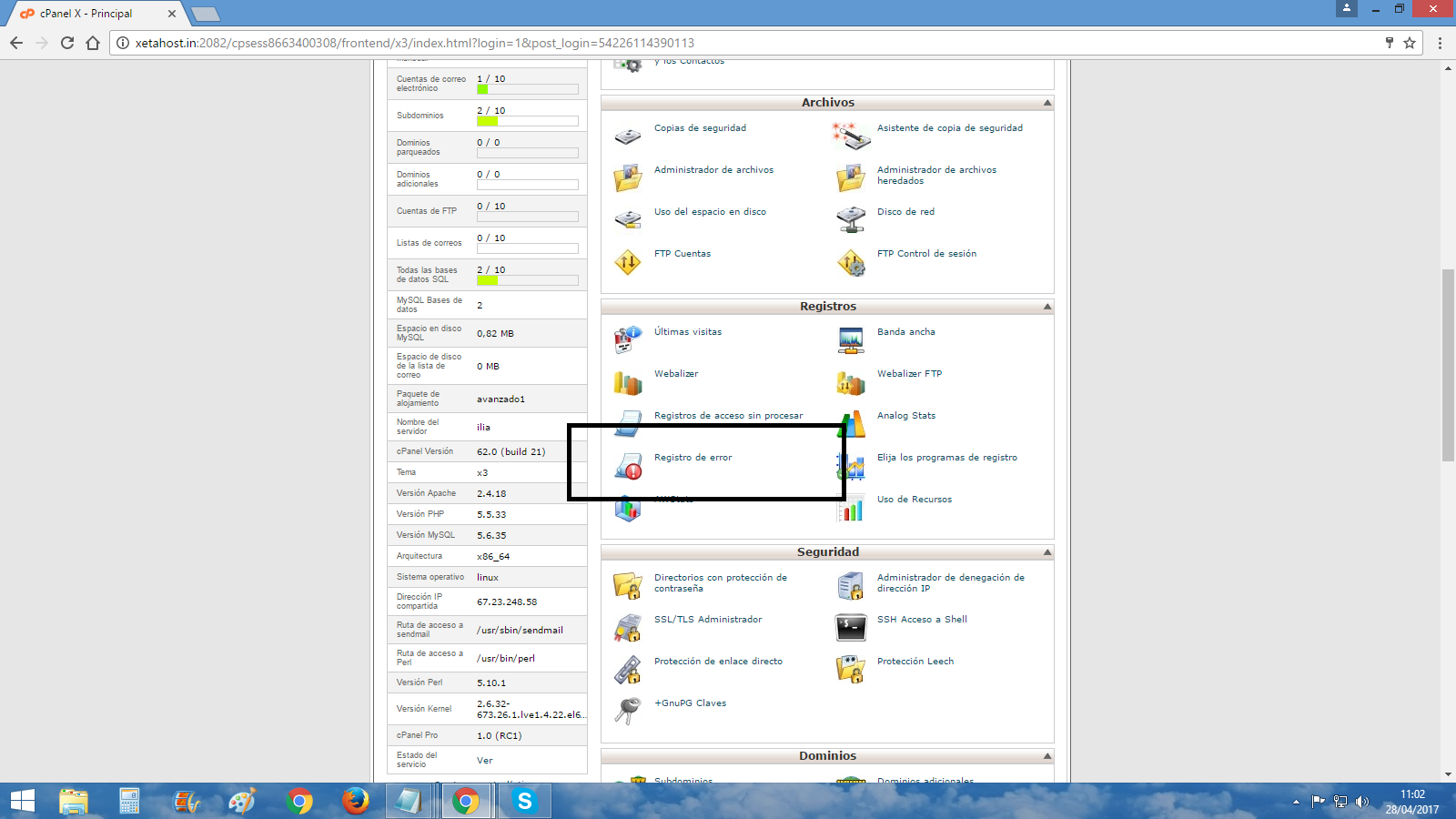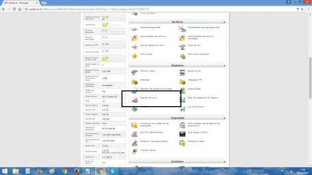 Para saber si el fallo es por falta de memoria debemos accesar a nuestro cpanel y en el apartado registros de error.