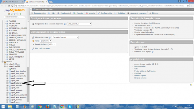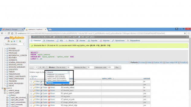 Una vez dentro de la opcion daremos clic en wp-options